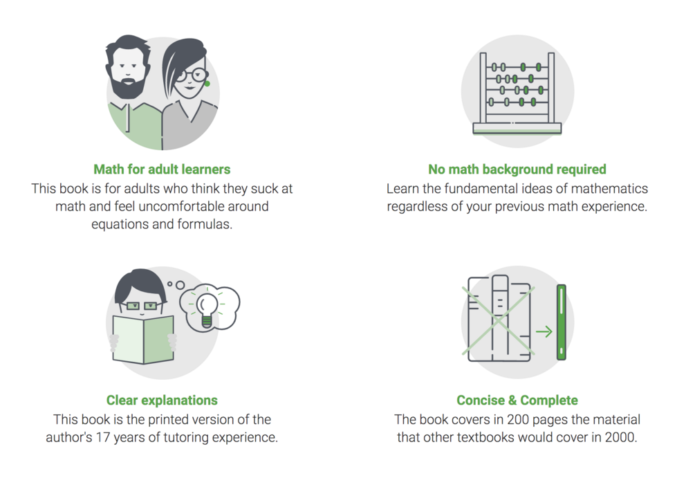 "I found it to be really great and the explanations were solid and easy to understand. I would recommend this book to anyone who does not feel confident in their math skills or wants to brush up." — James, student